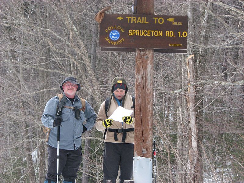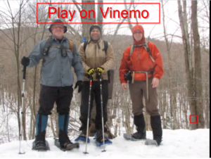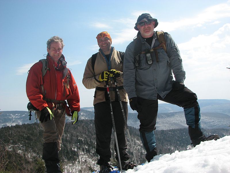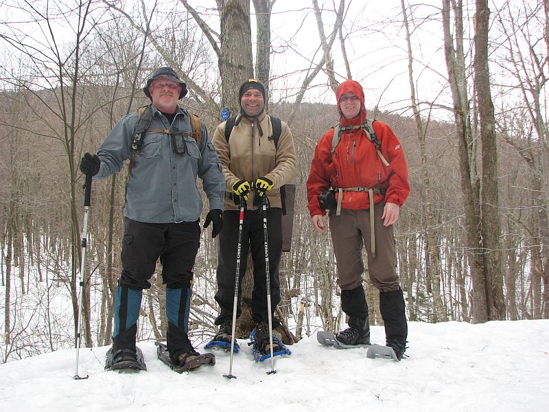 3 Guys hiking up Westkill mountain in the catskills on snowshoes